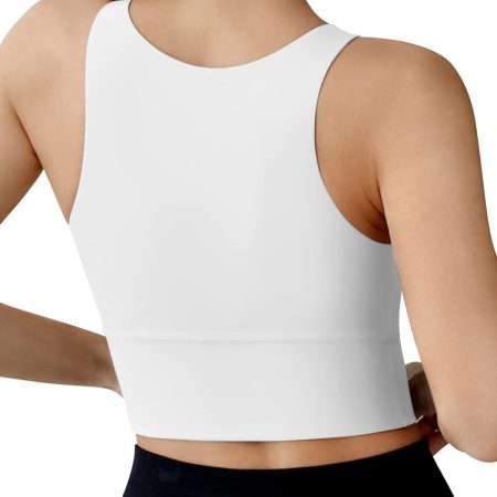 High Neck Sports Bra for Women Longline Medium Impact Workout Crop Tank Tops Wirefree Padded Yoga Bra Gym