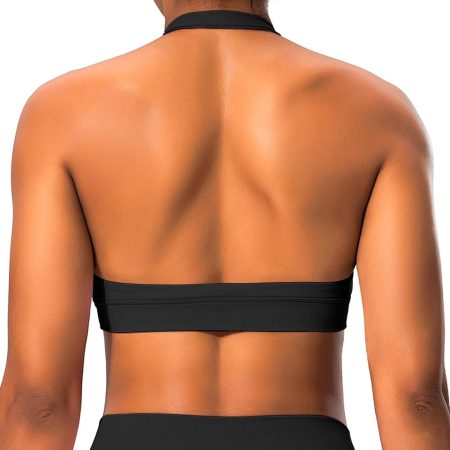 Halter Sports Bras for Women Backless Workout Bra Seamless Open Back Strappy Yoga Bra Crop Top with Removable Cups